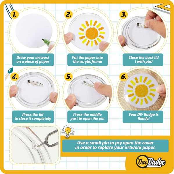 🟣Reusable: Exchange with different artwork for different occasions without rebuilding the entire badge.
