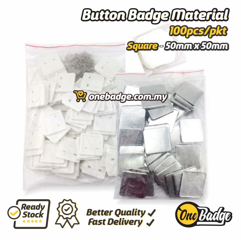 Square Button Badge Material- 50mm x 50mm